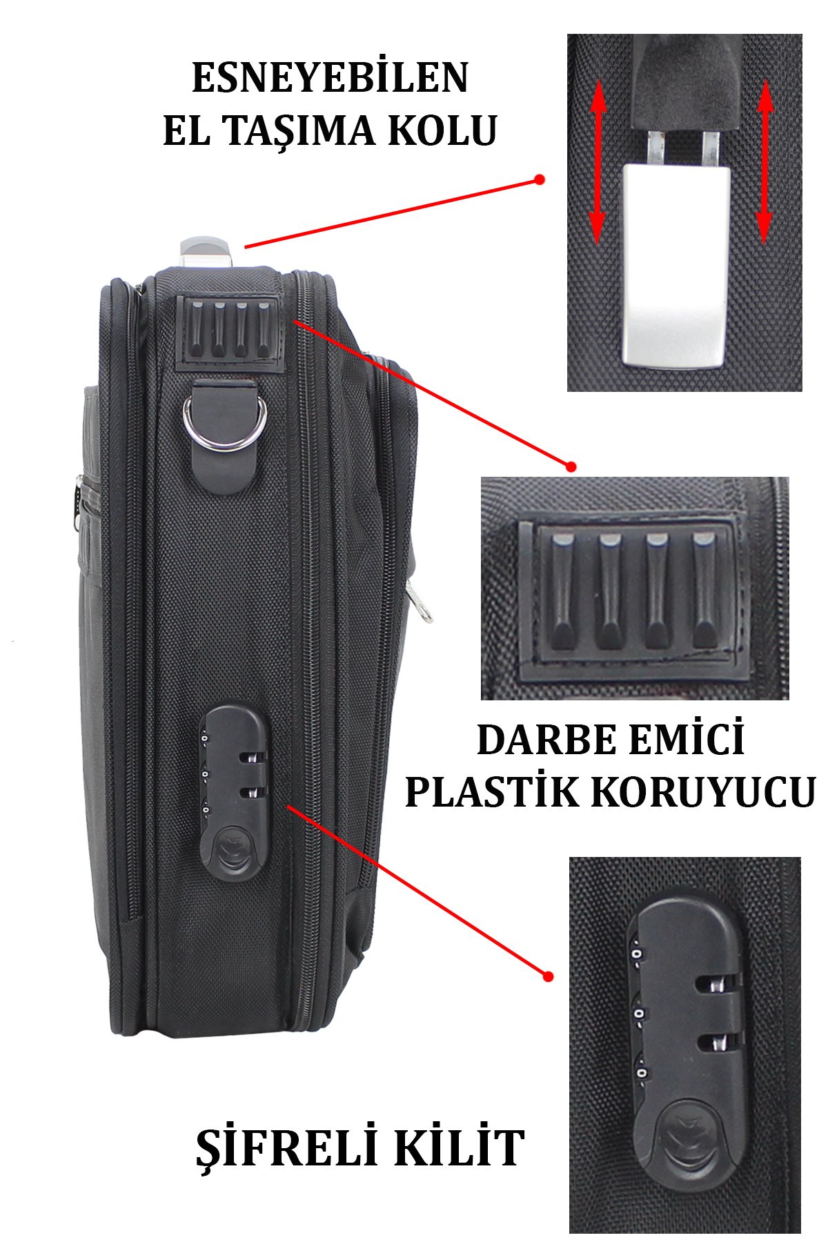 Laptop Çantası 15.6″ İnç Çelik Kasnaklı Darbe Emici Bölmeli Evrak ve Bilgisayar Çantası Özellikleri