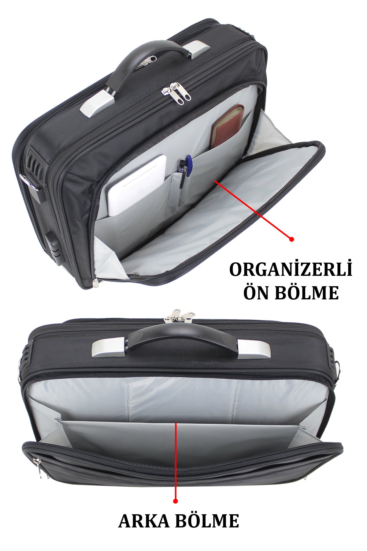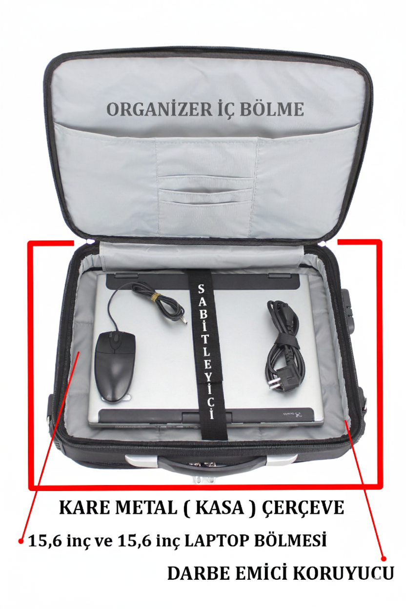 Laptop Çantası 15.6″ İnç Çelik Kasnaklı Darbe Emici Bölmeli Evrak ve Bilgisayar Çantası 8683255008117